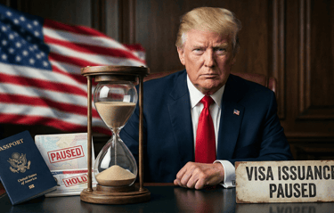 Esta suspensión aplica específicamente a personas que buscan residencia permanente (Green Card) desde el exterior mediante procesamiento consular.